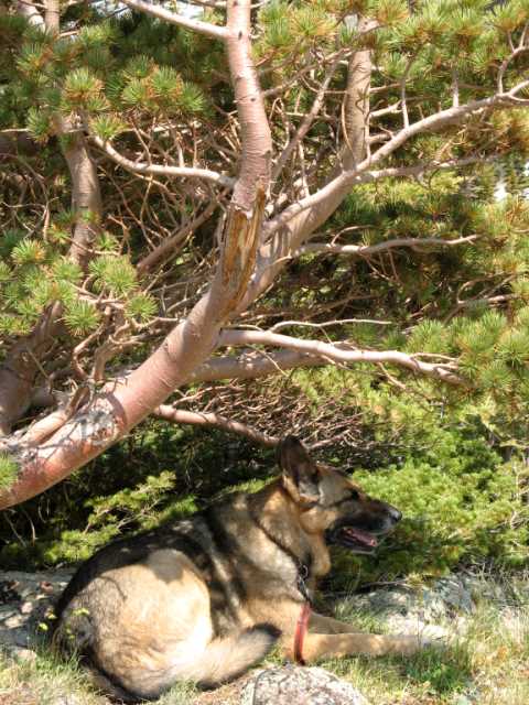 On the way back to camp, she perked up some and I realized she had been struggling at the top due to altitude sickness. Her breathing had been much more rapid than usual, and she began to be reluctant to do anything that required going up. As we went back to 9800 from 11000 feet, she became more spry and less recalcitrant. She did, however, take advantage of every rest break she could get.
