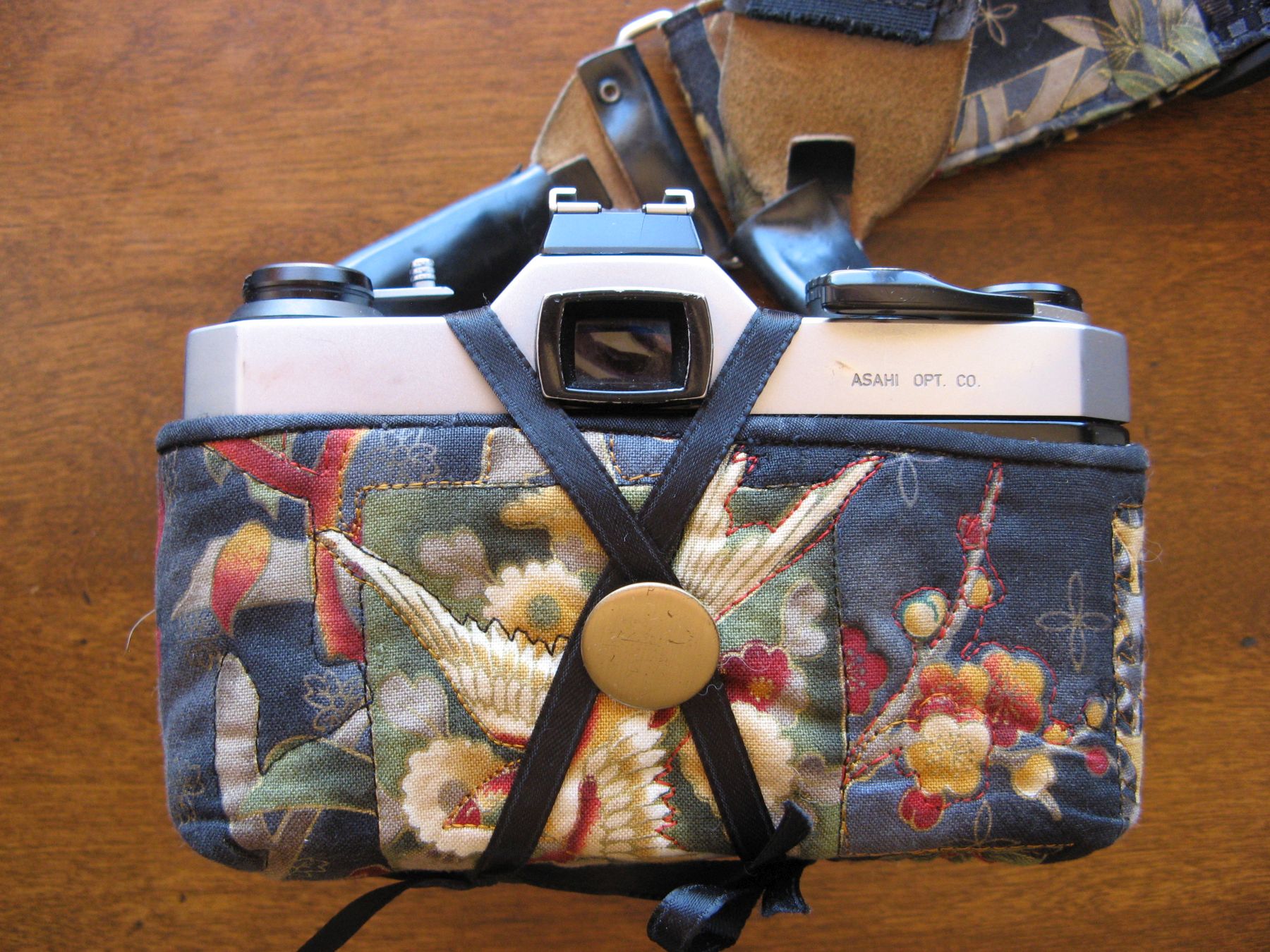Last week, I came across a picture of a crocheted camera case and it reminded me of the quilted case I made for my old Pentax SLR over a decade ago. The case I had was falling apart despite the duct tape and I couldn’t buy a new one because the camera was so old, so I made my own.