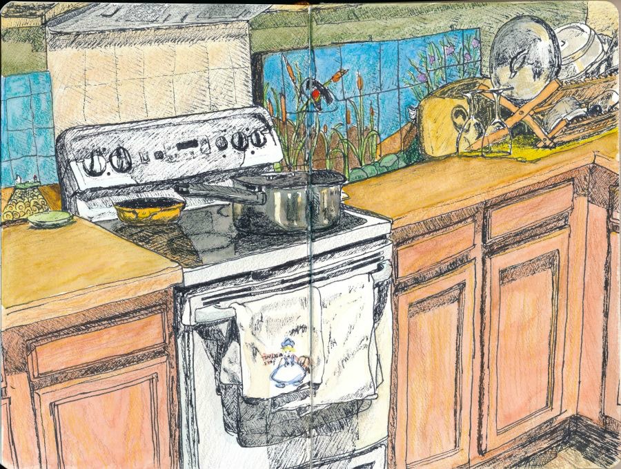 Thank for sharing what you’ve been learning. I really like your kitchen drawing – it has a kind of hand coloured etching look to it.