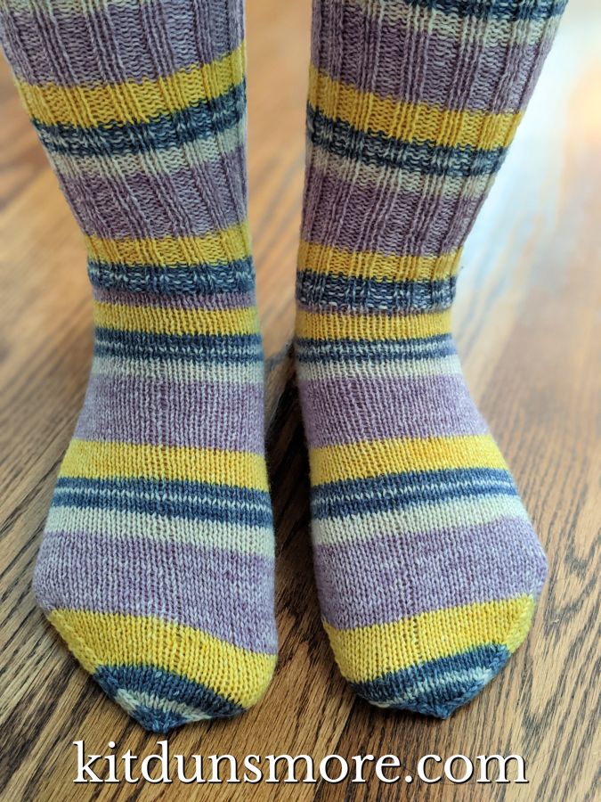 Will I wear them anyway? Probably. But I can’t help thinking there must be some way to make it clear that they’re a pair. Perhaps I should add something to them, like a duplicate stitch design on the back, or charms, or buttons. Something.